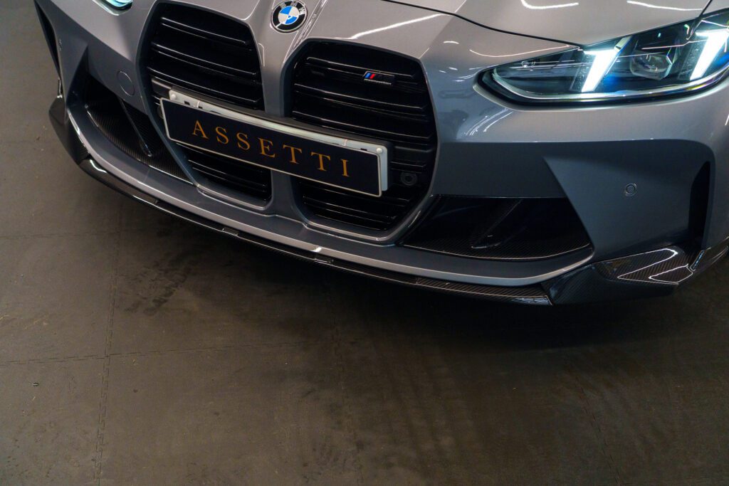The carbon fibre front splitter immediately transforms the front-end profile, giving the M3 Touring a lower, more purposeful look.