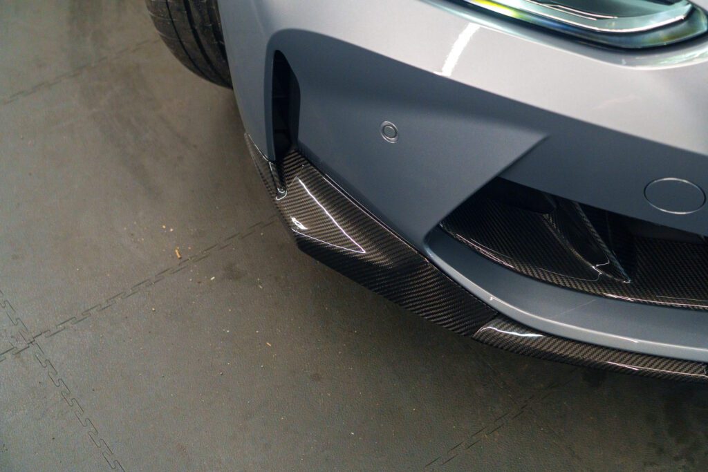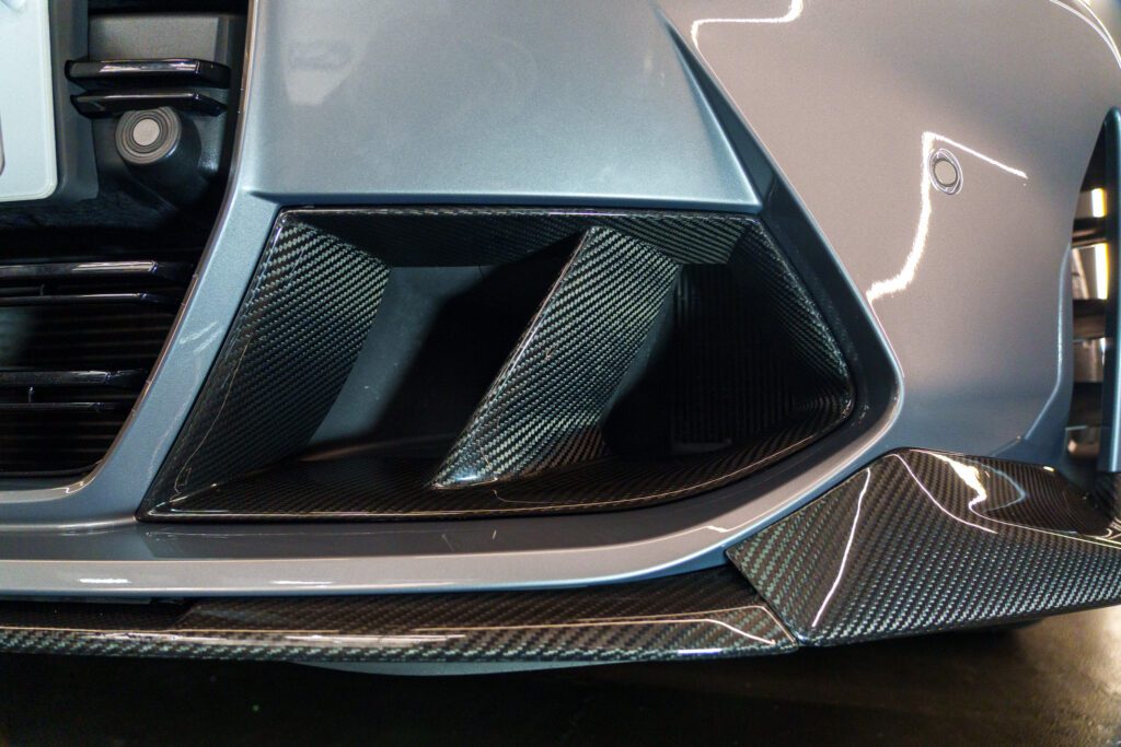 Subtle but effective, the carbon canards add a motorsport edge to the front bumper and tie the aero package together. Careful measurement ensures identical positioning on both sides for a balanced, factory-plus appearance.
