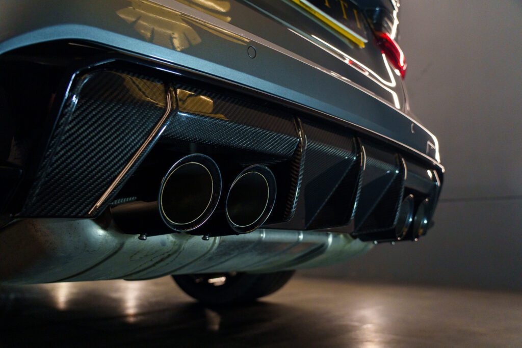 To complete the transformation, we installed a carbon fibre rear diffuser. This enhances the rear-end depth, frames the exhaust system beautifully, and gives the car a more planted, performance-focused stance.