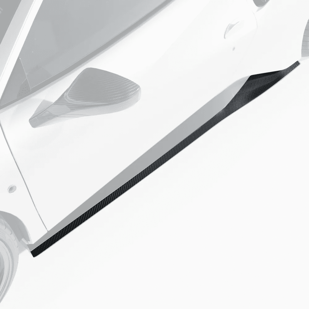 Carbon fibre side skirt extensions for the Ferrari 488 Pista, Made from 1×1 carbon fibre to match the OEM weave & These side skirts also use the original fixings for easy fitment.