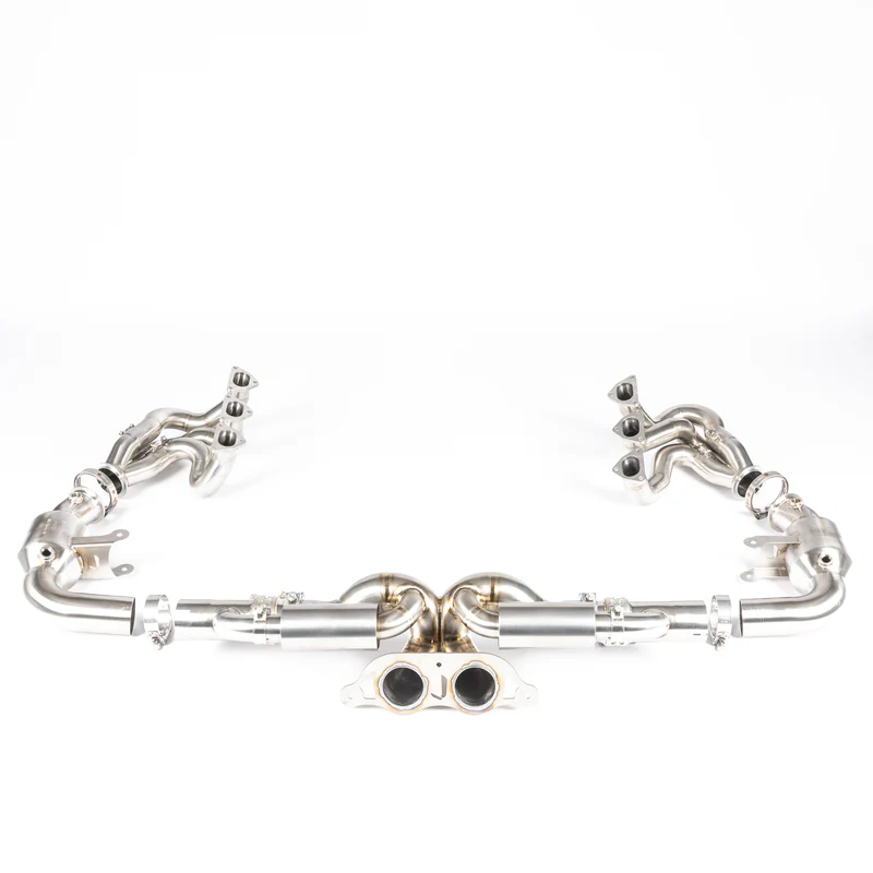 Through the use of light weight materials and clever design we have managed to significantly reduce the overall weight of the factory 992 GT3 / RS exhaust components.