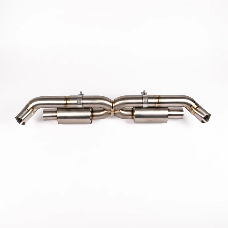 The purpose of the JCR Titanium Silenced Centre for the 991 GT2 RS is to reduce weight whilst increasing flow and improving sound. Our silenced version of the centre section provides a subtle increase in sound over that of the factory centre section and includes a tuned merge for improveded exhaust scavenging effect and a smoother and more pleasant tone.