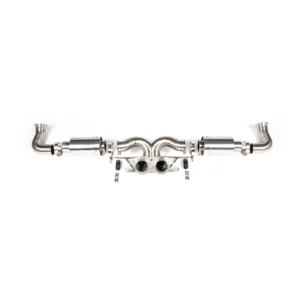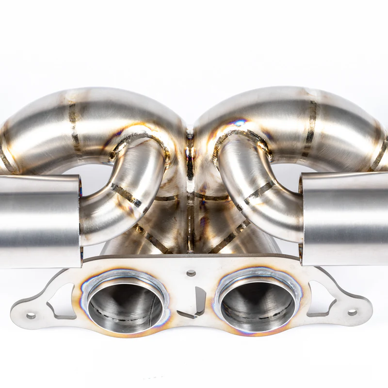 The system then merges into another key point, collecting the gasses and creating a scavenging effect whilst targeting unwanted drone frequencies then heading back out into a twin 70mm to the factory 991 GT style 3-bolt flange allowing customers to select any tip using the OEM style 3-bolt flange.