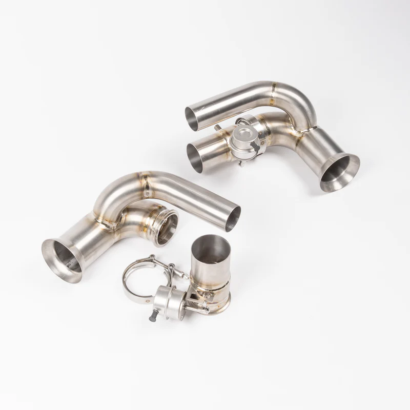 A popular upgrade for to the exhaust system of the 991 GT3 based cars is to delete the heavy OEM side silencers. Not only does this bring along large weight savings but also removes unwanted heat build up in the rear wheel arch area.
